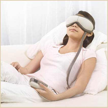 以預設的三種模式-振動、波動和脈衝,針對眼部主要穴點進行按摩,幫助舒緩眼部疲勞。眼罩上的小細孔能讓適當的光量進入,使反映在視網膜上的影像更加清晰。